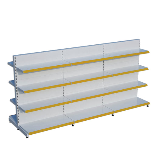 Beyaz Metal Çift Yönlü Orta Reyon 4 Katlı 3'li Birleşik Market Raf Sistemi | Market Rafı | G270CM Yükseklik H140 CM|