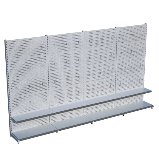 Beyaz Metal Delikli 3'lü Birleşik 2 Katlı Market Raf Sistemi | Hırdavat Rafı | G270CMYükseklik H220 CM|