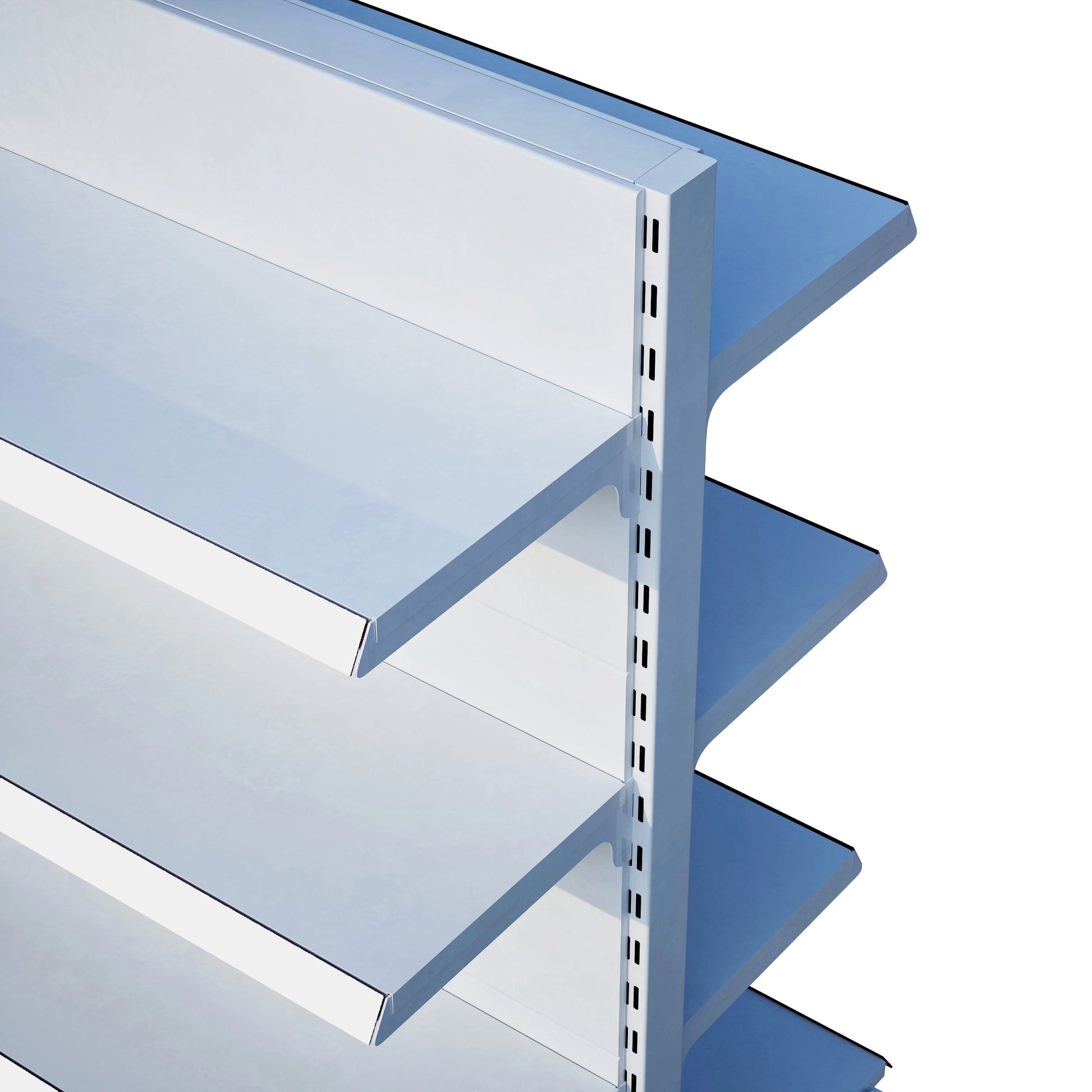 Beyaz Renk Metal 4 Katlı Çift Yönlü Market Raf Sistemi – 30*270*H140 CM