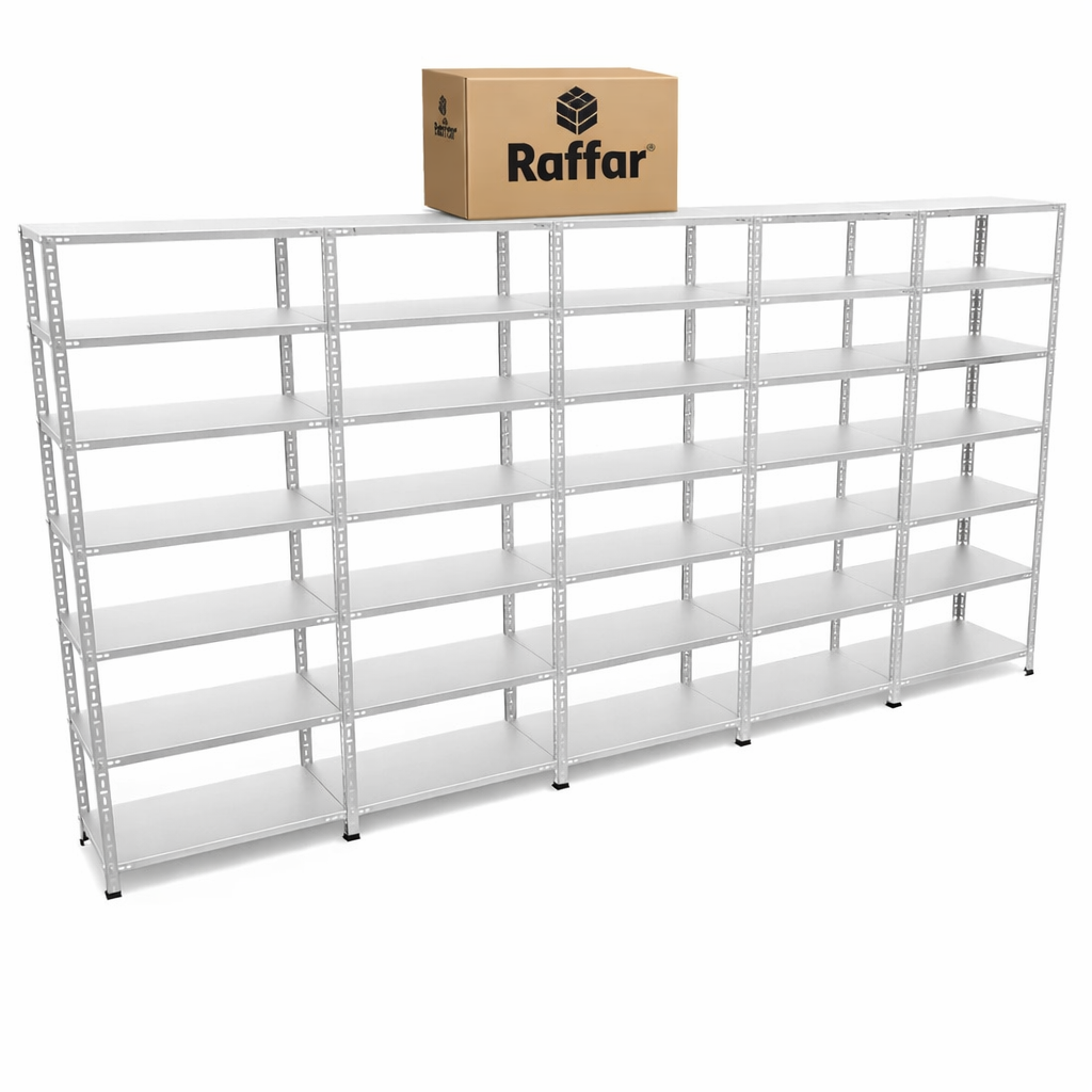 Galvaniz 7 Katlı 5Li Birleşik Arşiv Raf Sistemi - Çelik Raf - Metal Raf RAFFAR7KATLI5LI